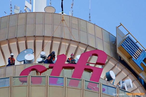 The sign was so big it had to be installed using rope access installers and each element lifted into position using a Sea King helicopter!